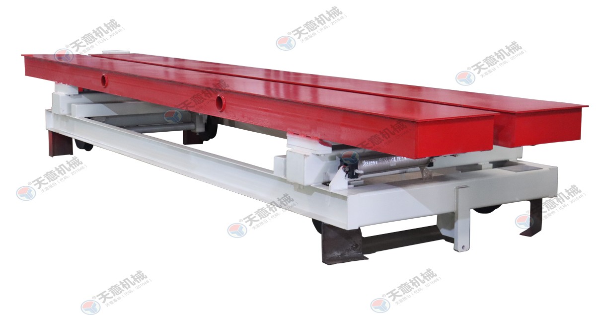 切割小車(chē)用于承載坯體為切割提供動(dòng)力;切割工段空翻脫模機將??蚍D90°,放在第一輛切割小車(chē)支座上進(jìn)行脫模,脫模后的??蚺c清理后的側模板進(jìn)行合模,合膜后的空??虮坏踹\至模具回程軌道上進(jìn)行涂油處理,等待下一...