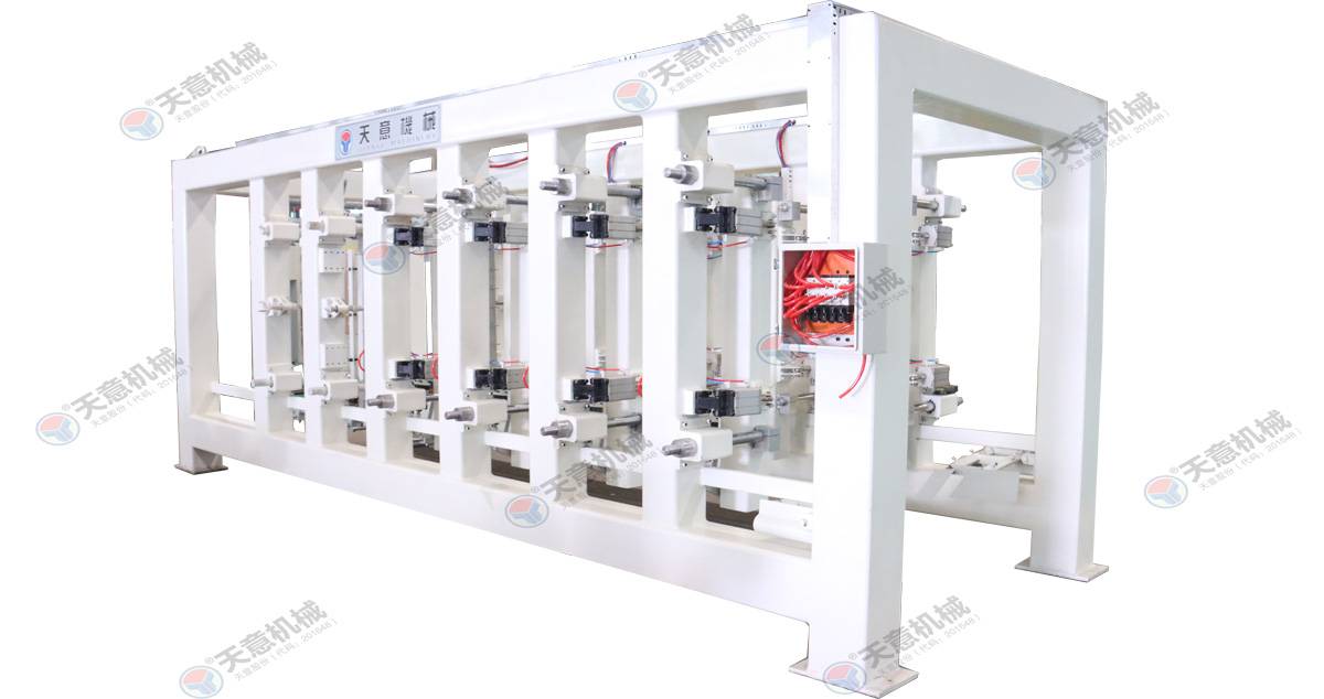 單模夾坯機:將板材吊運至板材輸送機或者將砌塊吊運至移動(dòng)并坯機上;自動(dòng)分垛機吊機將由成品吊運、移動(dòng) 掰板機、編組后的成品,通過(guò)自動(dòng)并垛機 并垛后,進(jìn)行分垛,分垛后的成品由鏈板式輸送機,輸送至成品打包區待打...