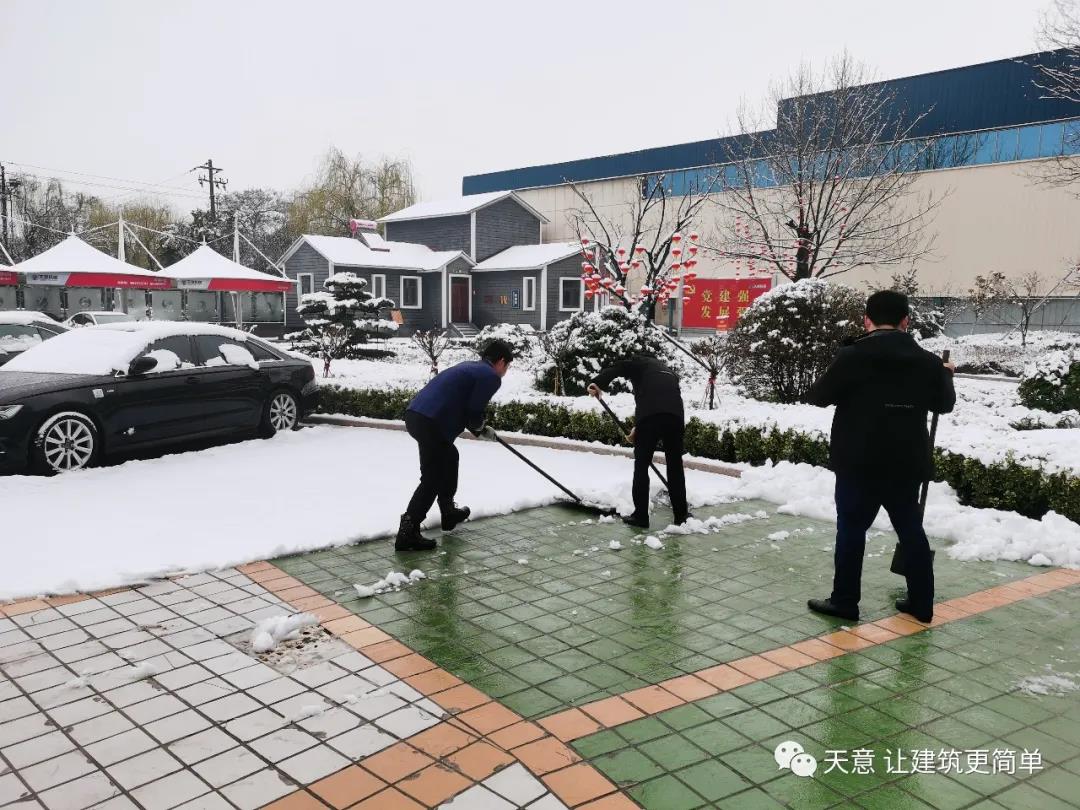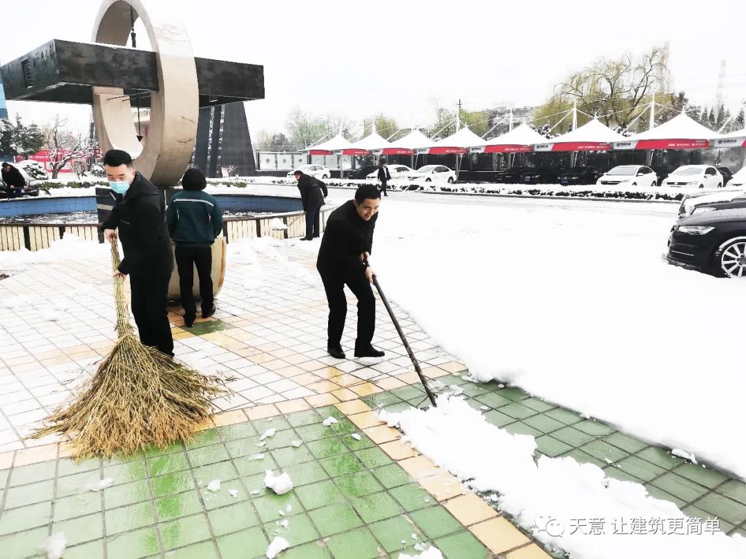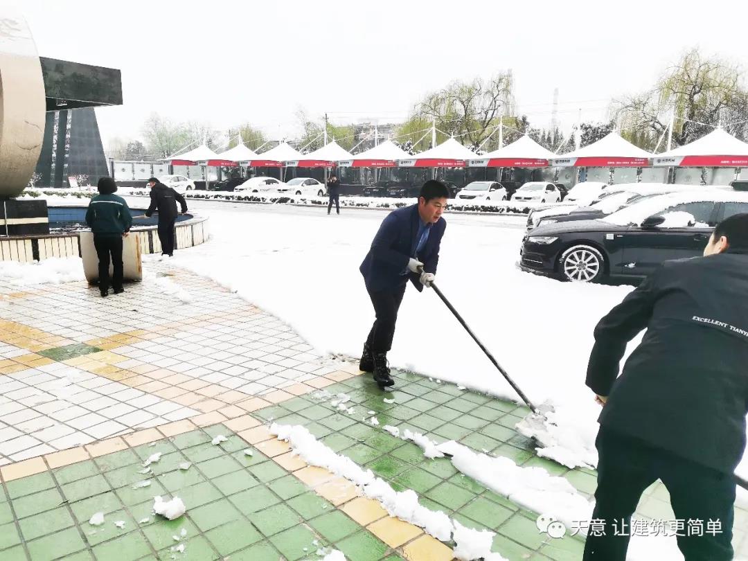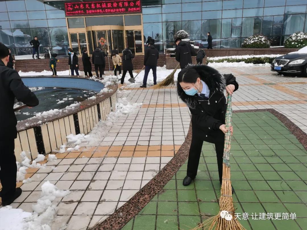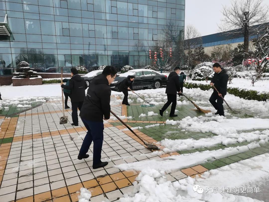 大雪悄然而至,一覺(jué)起來(lái),窗外已是銀裝素裹。然而大雪的降臨也給大家的出行帶來(lái)諸多不便,公司大門(mén)口、辦公樓前的道路都被皚皚白雪覆蓋。早晨上班前,公司總經(jīng)理劉海龍、營(yíng)銷(xiāo)總監郭川東帶領(lǐng)公司員工拿起掃帚鐵锨,滿(mǎn)懷激情,投入除雪當中。整個(gè)除雪作業(yè)過(guò)程井然有序,熱火朝天,干勁十足,大家不懼寒冷,不怕手凍。鐵锨和地面的碰擊聲、掃帚清掃雪花的刷刷聲,不一會(huì )兒辦公樓前的積雪已蹤影全無(wú),所到之處,雪沒(méi)了,路干凈了,掛滿(mǎn)枝頭的冰凌隨風(fēng)婆娑起舞,點(diǎn)頭稱(chēng)贊,大家的心中更是無(wú)比的欣慰,雖然凍紅了臉、累出了汗,但累并快樂(lè )著(zhù)。