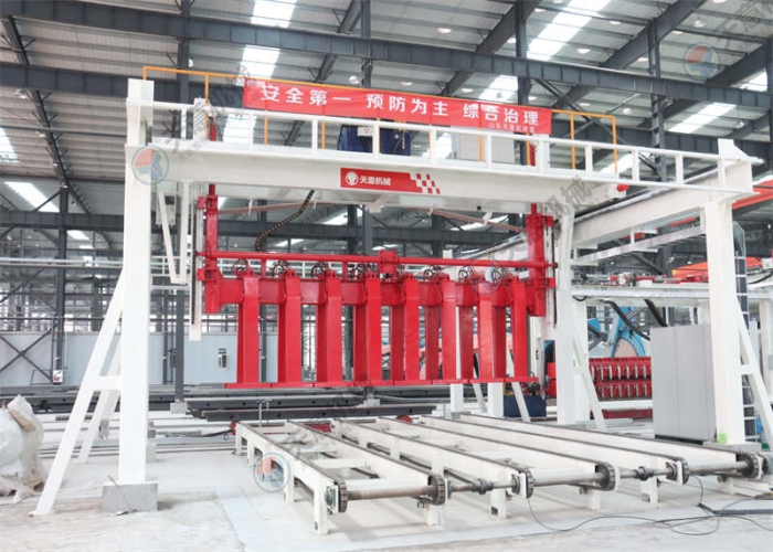 將板材吊運至板材輸送機或者將砌塊吊運至移動(dòng)并坯機上;