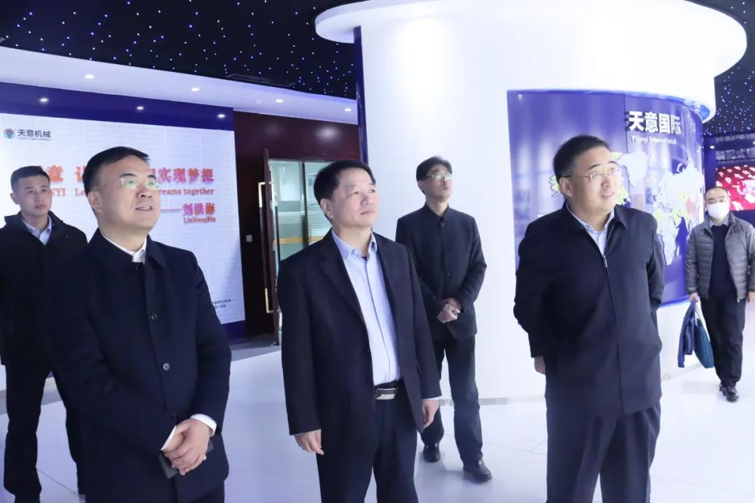 蔣萬(wàn)云一行先后對天意機械高層次人才工作站、科技體驗館、紅領(lǐng)天意黨建展館、數字化車(chē)間等處進(jìn)行走訪(fǎng)。他們邊走邊問(wèn)詢(xún),邊看邊交流,深入了解了檢察機關(guān)在服務(wù)和保障民營(yíng)企業(yè)健康發(fā)展方面發(fā)揮出的重要作用。