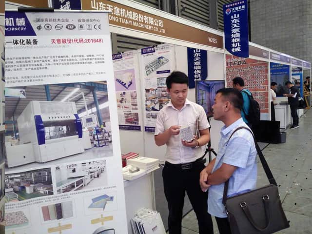 本次展覽會(huì )現場(chǎng)人頭攢動(dòng),氣氛十分熱烈,天意機械展位也是人氣火爆,前來(lái)咨詢(xún)鋼結構集成房屋、外墻保溫裝飾一體化板生產(chǎn)線(xiàn),輕質(zhì)墻板生產(chǎn)線(xiàn)、復合墻板生產(chǎn)線(xiàn)等產(chǎn)品的客戶(hù)絡(luò )繹不絕。銷(xiāo)售部李經(jīng)理,熱情的向來(lái)訪(fǎng)的每位客戶(hù),介紹了天意綠色建材裝備在鋼結構建筑、裝配式建產(chǎn)業(yè)化中的應用優(yōu)勢。