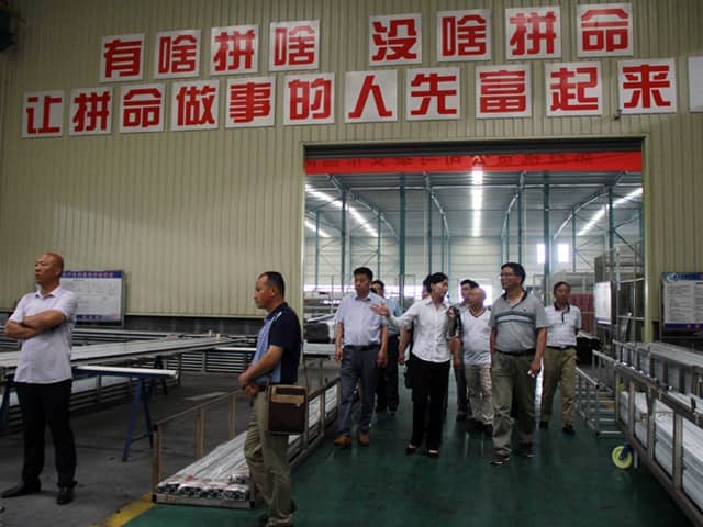 緊接著(zhù),參觀(guān)了天意樣板別墅、集成房屋、設備生產(chǎn)車(chē)間、鋁型材加工基地。專(zhuān)家領(lǐng)導團對我公司擁有的先進(jìn)助力建筑垃圾廢棄物資源化利用的擠壓墻板生產(chǎn)線(xiàn)給予了高度評價(jià)。