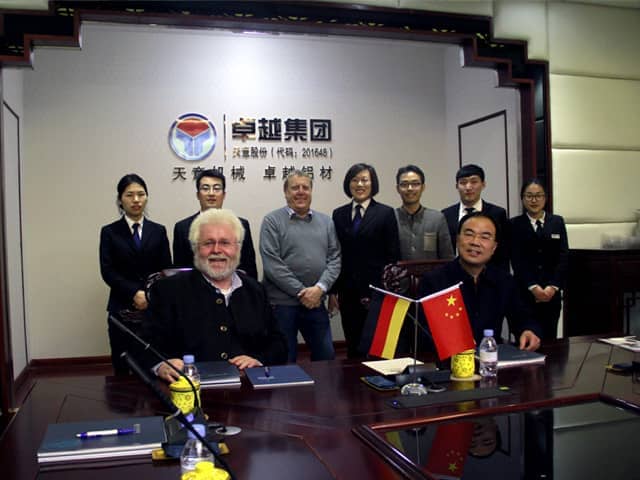 3月15日,德國外賓Dipl.lng. Bernhard Heid和Wolfang Foerster到天意機械參觀(guān)洽談合作,天意機械董事長(cháng)劉洪彬,外貿部負責人董偉、李芳芳等進(jìn)行了熱情接待。