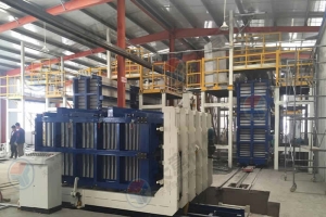 該復合墻板生產(chǎn)線(xiàn)立式旋轉臥式出板復合墻板成型機,一次可生產(chǎn)四十塊墻板,該生產(chǎn)線(xiàn)主要分為:配料攪拌系統、墻板成型系統、液壓整體開(kāi)模系統、液壓翻轉系統、整體出板翻轉碼垛系統、成型機自動(dòng)循環(huán)系統、變頻擺渡系統、數控配電系統等部件 組成。該生產(chǎn)線(xiàn)自動(dòng)化程度高,液壓開(kāi)合模,解決了傳統立式復合墻板機人工開(kāi)合安全隱患,提高了工作效率。設備配有整體出板碼垛系統,解決了傳統人工出板方式,減少產(chǎn)品的破損率,提高了產(chǎn)能。生產(chǎn)線(xiàn)使用密封式泵送系統配備雙工位注漿槍?zhuān){速度快密實(shí)度高,材料粘結更緊密。