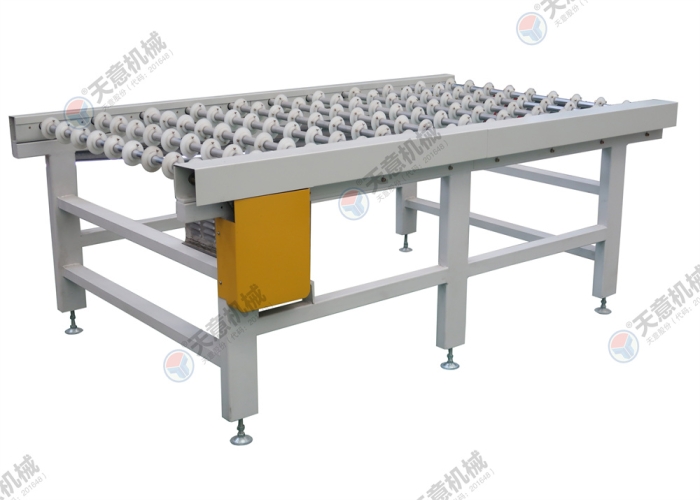 采用尼龍輪輸送,既能減少與膠面的接觸面積還能保證板材的平穩輸送。